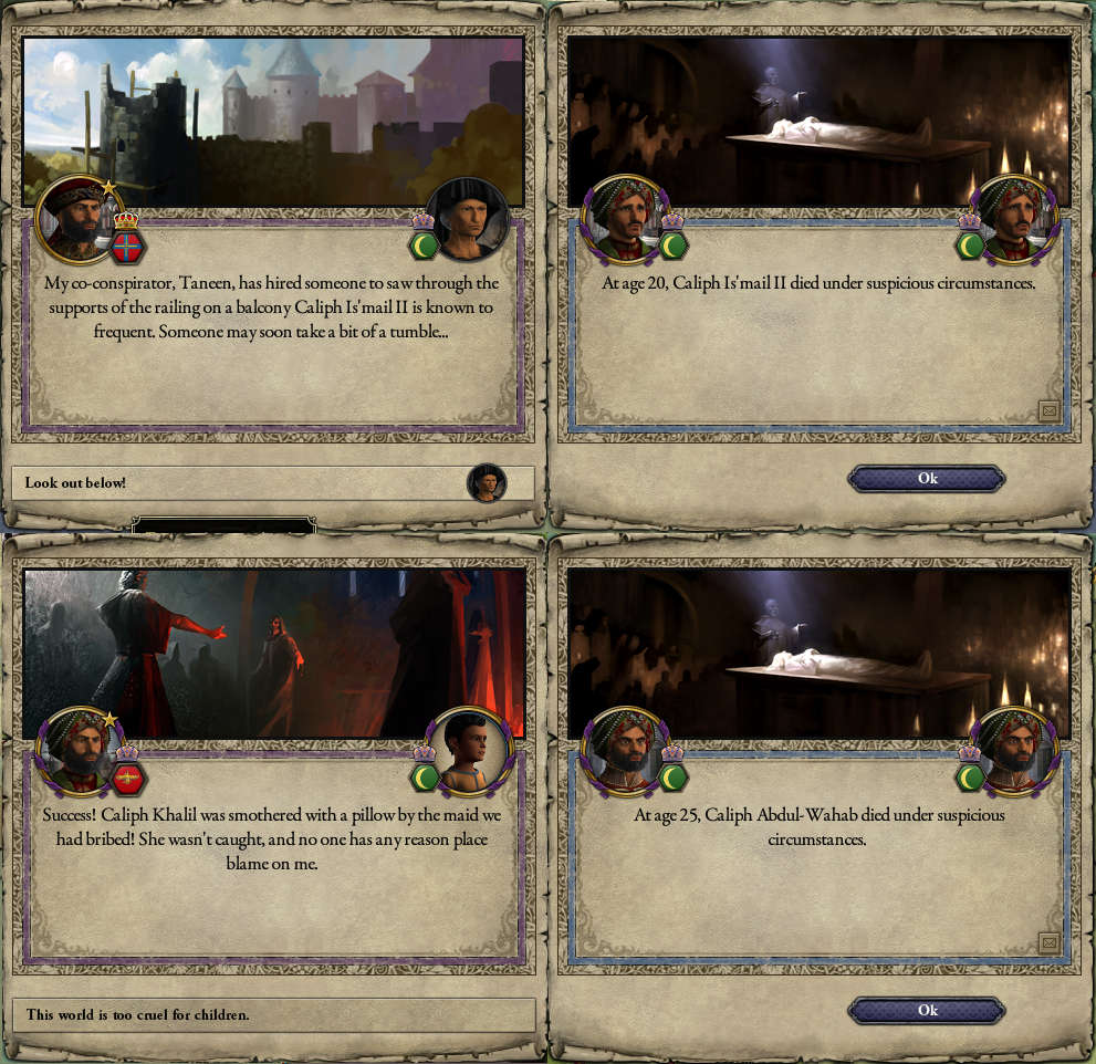 彼がスンニ派に戻らないように、勤勉trait持ちの教育者についた場合は即暗殺していたのですが、その努力は最終的に実ることになります。