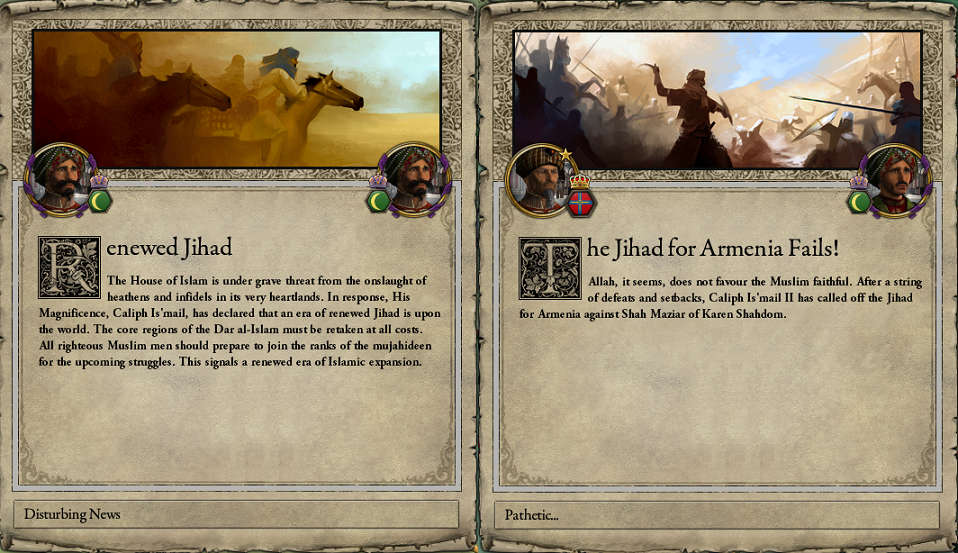 バグダッド失陥がトリガーとなったのか、ジハードが解禁されて即日少アルメニアにジハードを宣言されますが、