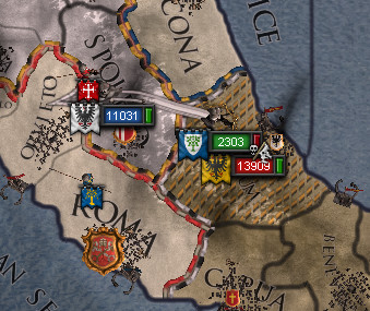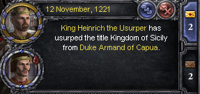 宰相: 我が君、た、大変です! 神聖ローマ帝国が、シチリア王位を求めて宣戦しました!