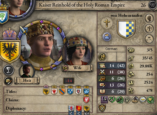 ウ: ふむ。シチリアで内乱が起こっても積極的には介入しないかもしれない。 付け入る隙はあるな。 シ: ちなみに、これが皇帝。