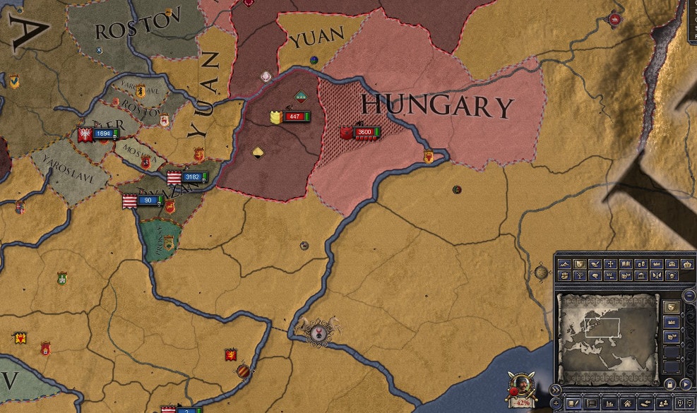 大臣「戦勝をお祝いしたいところですが、悪い知らせが入ってきています」 シャルル「申せ」 大臣「同盟国ハンガリーにて、派閥の要求で国王がビザンツ皇妃に交代し、かの地がビザンツ帝国の支配下に入った模様です」