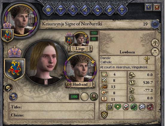 11月3日、公妾スィーネが皇帝の子マーサを出産した。 皇帝はマーサを認知し、スィーネを皇后に立てられた。 皇帝はスィーネとの間に二男一女をもうけられ、第一子をマーサ、第二子をロルフ、第三子をイーレクと申された。 また、皇帝は公妾四人を立てられた。 第一はヘレナと申され、一男イーナルをもうけられた。第二をシャンナと申され、一男ヴィクトーリンをもうけられた。 第三をユダヤ人ヤコブの娘リヴカフと申され、一男エスベンをもうけられた。第四をファリンダと申され、一女ビントをもうけられた。 004.jpg