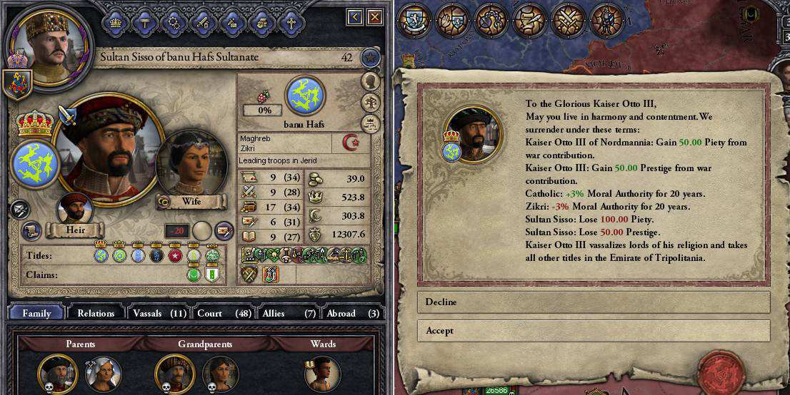 7月22日、皇帝はシチリアとランゴバルトの王エアンストは自身の臣ではなく、一独立諸侯であると詔された。 &ref(): File not found: "022.jpg" at page "AAR/デンマーク年代記/巻十六 オト大胆帝 1473~1487";