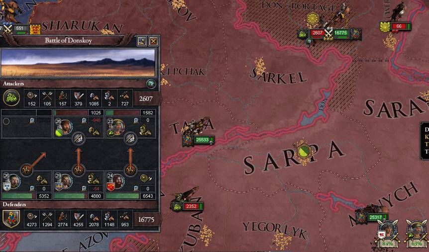 5月26日、ドンスコイにて帝国軍2万がティムール朝可汗コルマカンの率いるティムール軍1万7千を破り、コルマカンはカムイシンに逃れた。