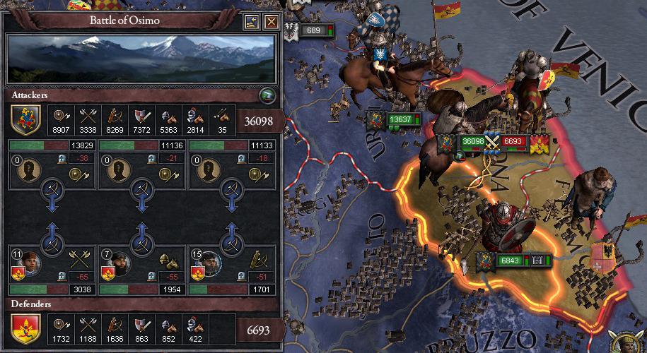 11月17日、オシモの会戦においてマルケ軍7千は敗走し、カメリノを割いて降伏した。