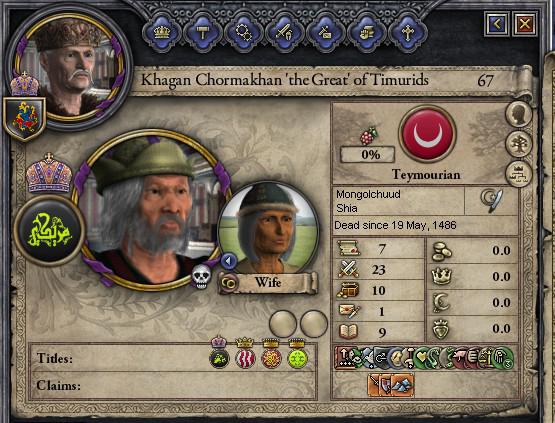 5月19日、ティムール朝可汗コルマカン"大帝"が死亡した。67歳であった。