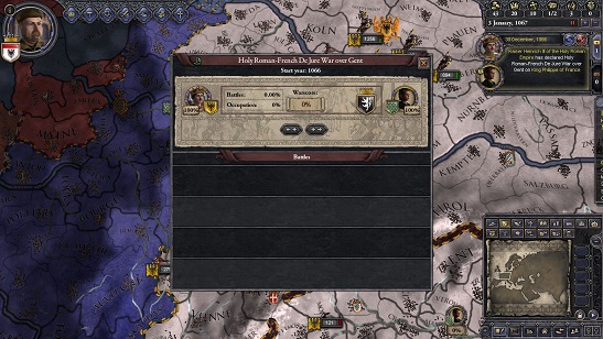 フランスはフィリップ王の治世であるが、未だ幼君。国内では大諸侯が幅を利かせ、まとまりに欠けている。 当然皇帝の遠征軍を阻む力などなく、遠征は無事に成功したのであった。実にめでたい・・・。
