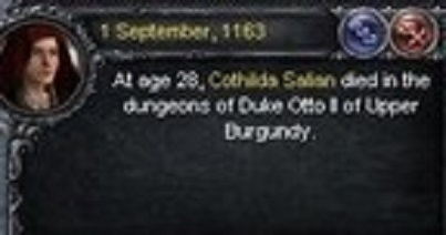 私の回答に対し、皇帝からの返答は「上ブルグンド公の言う通りだ。すまなかった。」というものであった。 それ以降、皇帝より娘のことに関する要求は一切無かった。 ただ、皇帝も内で思うことがあったのだろう、私が都に参集を命じられることもそれ以降無かった。 結局私が死ぬまで皇帝とは疎遠だったなあ。 まあ、コチルダを死ぬまで牢から出さなかったから当然といえば当然だが、ちょっと大人げないよな。