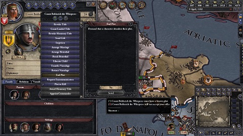 結局私は密偵頭に今後も監視を怠らないように厳命し、バルダリッチの陰謀を静観することにした。 その後この愚かな陰謀に賛同者が現れることはなく、彼も最終的に諦めたようで、なんとか穏便に済ませることができたよ。 ああ、そうそう。このバルダリッチという男は、その後の我が家の歴史に深く関わっていくこととなるから諸君らは頭の片隅にでもその名を刻んでおいてくれたまえ。