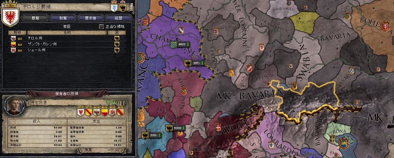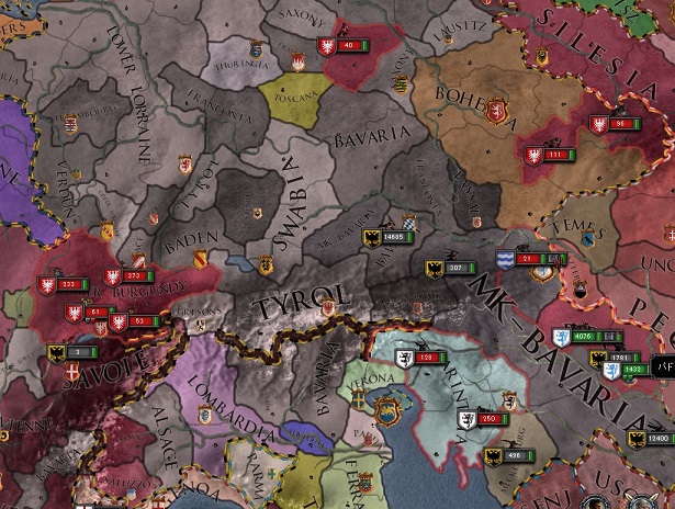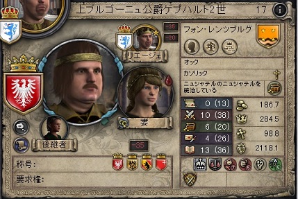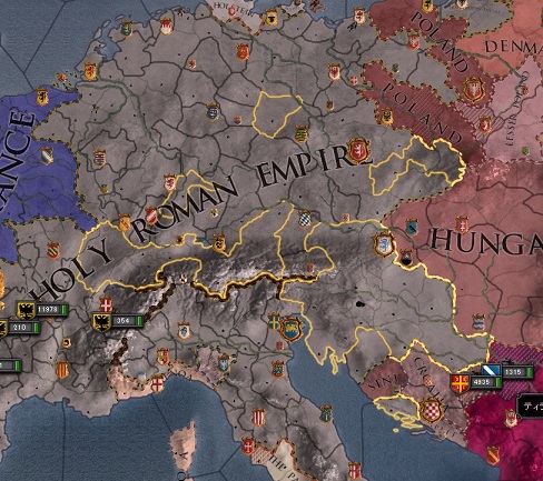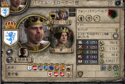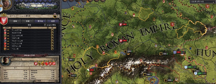 絶対的な権威法の下では戦争できないので動けず。 王国の維持に力を注ぐことに。 そして、いつの間にかバベンベルグ家が帝国内に増殖中。
