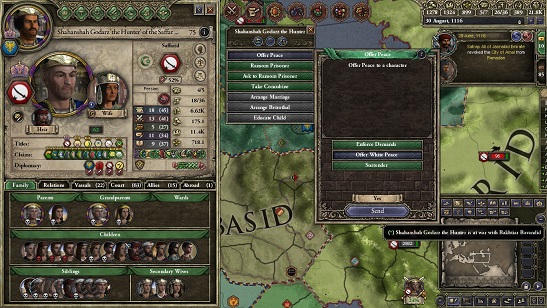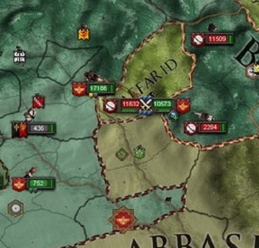外敵が退けられたことによりひとまずの安泰が保障されたアラビア帝国では、諸侯が各々の野望のために再び動きを活性化させた(opinionのdefending補正がなくなった)。 Tabriz女公が王権低下を試み兵を挙げたのも、外敵が去り平和になったことが要因であった。