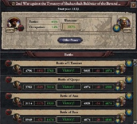 勢いに乗ったアラビア軍は占領されていたTabristan諸都市の解放を行い、戦勝点を大きく引き戻すことに成功した。 そして…