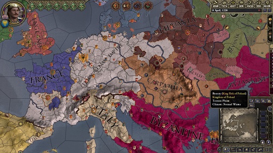 神聖ローマ帝国、フランス、カルパチア帝国等地域を統合する勢力が生まれてきている。 このうちカルパチア帝国は改革テングリ教を信仰する大勢力である。 この世界のフランスは南北別々の国として歩んでいくことになるのだろうか。 フランスの教皇はローマに帰還することが果たしてできるのか?