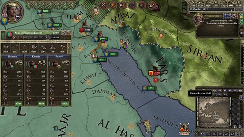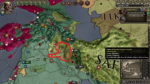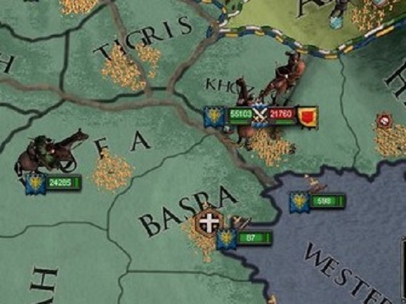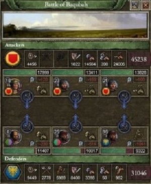 Ilkahanateとの戦に敗れたアラビア帝国は傭兵を大量に雇用し、すぐさま取られた土地の奪還を目指して再戦を挑んだ。 占領したばかりであり城壁のもろいこれらの土地は、開戦後即座に侵攻してきたアラビア傭兵軍による強攻により、次々と落とされ、戦勝点は瞬く間に100となった。