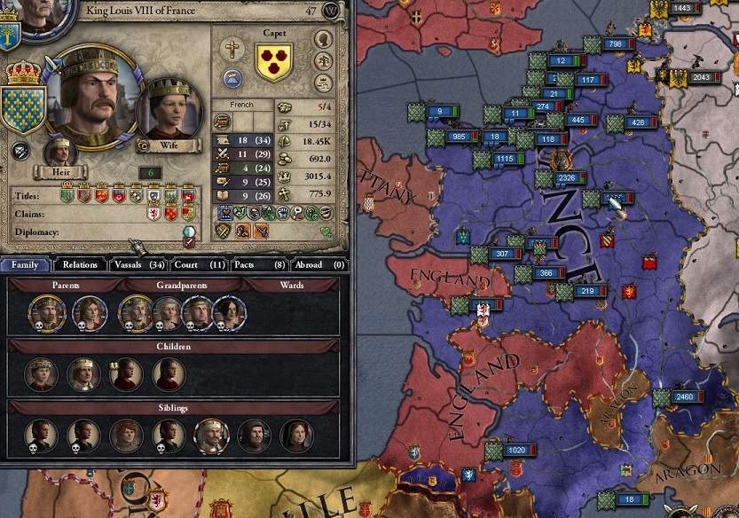 「強健」持ちのプリンセス・オブ・フランス発見。 女神かと思った。 即座に、先ほど紹介した我が「天才」持ちの孫と婚約させ、フランス王と同盟締結。