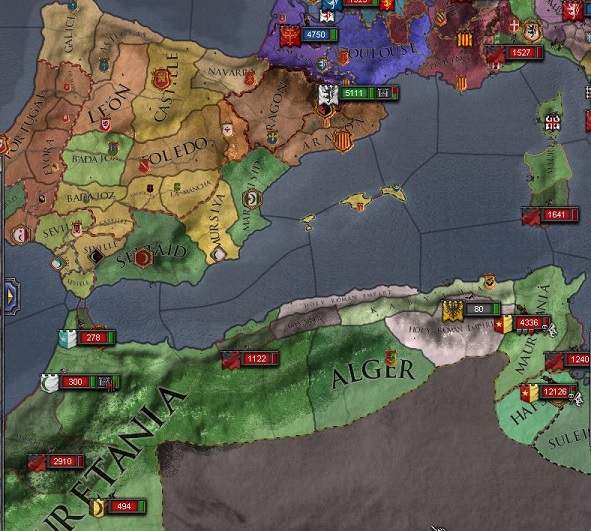アフリカで、帝国軍VSイスラム連合軍の戦いが続いているこの状況で、アフリカを中心とした蜂起とは間が悪すぎる。 これどう見ても、反乱鎮圧してるさなかにイスラム軍が突っ込んでくるやつだ。 ひとまず、アフリカ側の兵は出さず、半島の直轄領と諸侯の兵のみで、地中海北岸の叛徒を制圧するか・・・としたところ、11月に入った途端