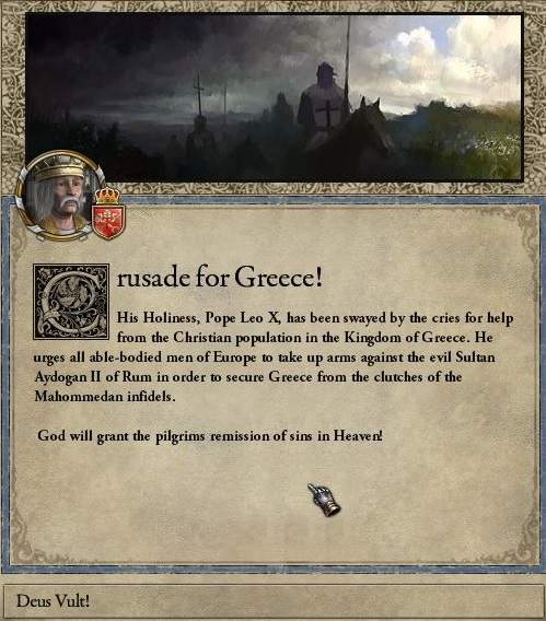 余りにも間が悪い。この内乱真っ只中ではさすがに参戦できん。 と歯噛みしていたのだが、この時期イングランド・フランス・カスティリャといった諸王国はいずれもそれぞれの戦争を戦っており、 参加したのは見事に中小諸侯ばかり。ギリシャをガッチリ抑えるルームセルジューク軍にコテンパンにされてしまっていた。 後世、史上最低の十字軍・・・と言われたとか言われなかったとか。