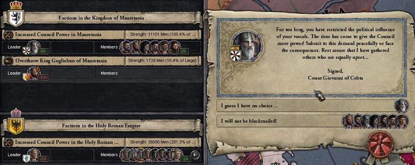 1300年はモーリタニア王国史上でも稀に見る混乱の年であった。 なにしろ長男が暗殺された直後、評議会の権限拡大を求める派閥の人数が閾値を超え、