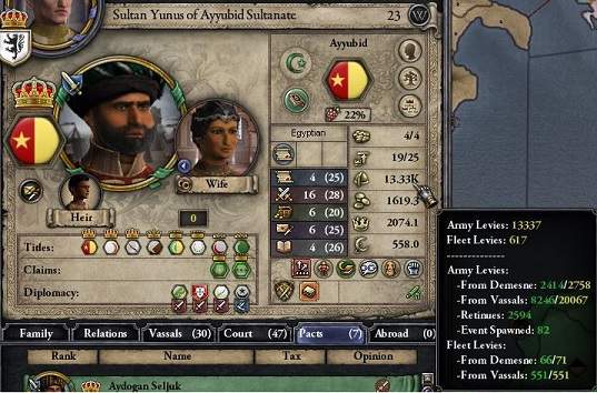 この頃、イスラム最強勢力であるアイユーブ朝は、2ヶ所の反乱と、ペルシャとの戦争に追われ、その兵力を大きく損耗していた。 この時期のモーリタニア王の動員力は約15000。全力のアイユーブなら最悪その3倍は出てくるが、今なら勝ち目がある!