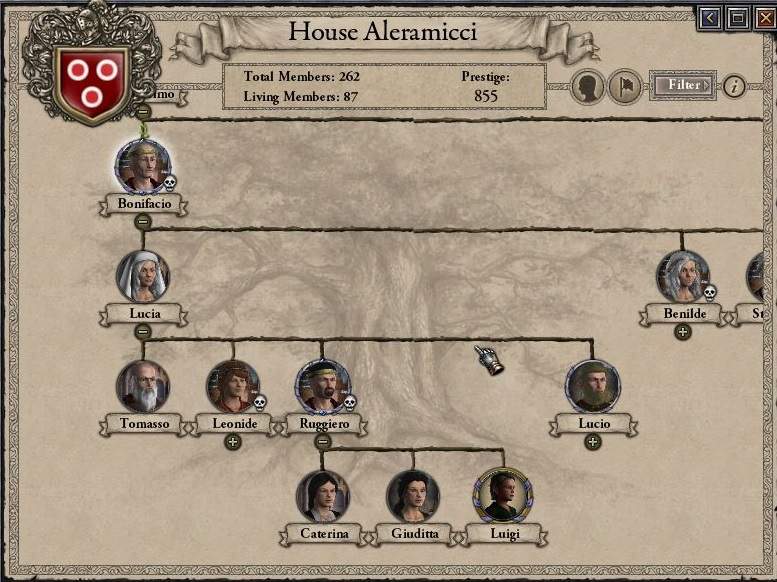 これ、女系結婚なので、ジョバンニが死ねば彼の持つ称号は全てあの公女が引き継いでしまう。 このまま放置していては、公爵位2つが他家に流出する事態に・・・なんとかして阻止せねば・・・ だがあの女公、成人前のクセにガード硬くて暗殺plotが成立しない・・・ぐぬぬぬぬぬ