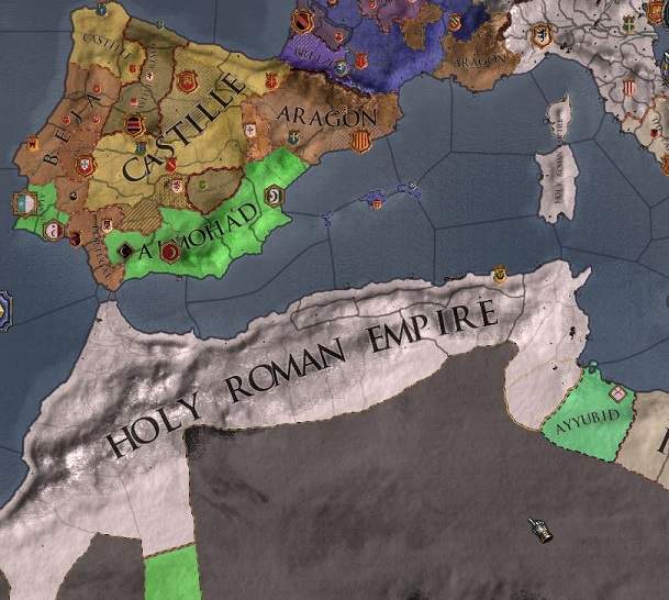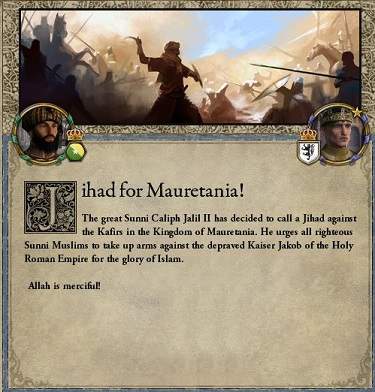 15年6月22日、キレナイカへの聖戦に勝利。モーリタニア王国はエジプトへの足掛かりを確立した。 キレナイカ各地には例によってイタリア人伯を封じ、すると封臣限界を完全に超過したため、 新たにキレナイカ公爵号を設置、キレナイカ公には、先々代・モーリタニア王グリエルモ1世の次男が就いた。