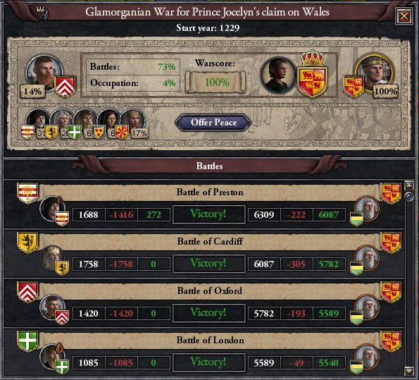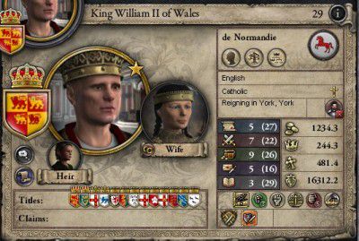 ウェールズ王ウィリアム2世 闘病の果てに54才で没する 十字軍での活躍の他、内政に力を入れた事などから「公正王」を異名を取る 婚姻政策によりブリタニア帝国にまた一歩近づく事となる
