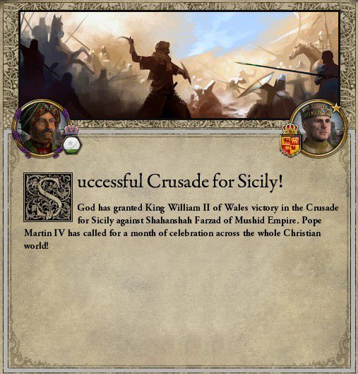 十字軍がカトリック側の勝利に終わり、シシリーを奪取しました。