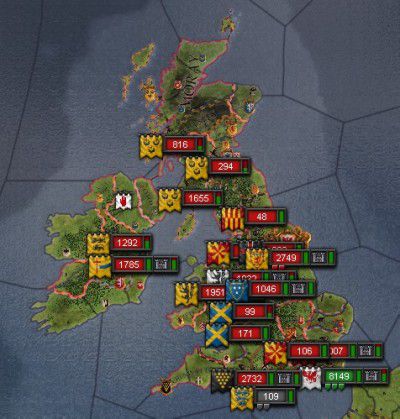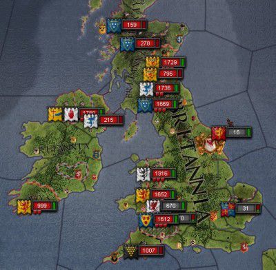 ブリタニア帝位を巡る争いは当方有利です。ですがイングランド王位の方は劣勢です。二正面作戦ですゆえジリ貧になる可能性大ですね。
