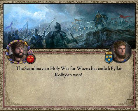 時は流れて1072年、Kolbjornはブリテン島征伐を再開する。 Wessex公領を求めてWessex公へ聖戦を、親類の解放を求めてアイルランド王へ宣戦を布告し、翌年には危なげなく勝利を得たのであった。
