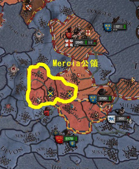 同年Deheubarth公が、翌1074年にはKent公が降伏した。 次の標的はイングランド王領内での大勢力、Mercia公である。