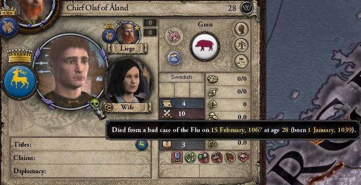 エリック公は35歳。まだ子供は一人もおらず、公位継承先は何台か前に血が交わっているデンマーク王となっている。 信仰は改革前のゲルマン信仰。配下の伯級族長もまた全員ゲルマン信仰だ。対して、スウェーデン王とその直参の中に、ゲルマンは一家しかない。 宗教改革をどう遂げるかが当面の大きな課題だ。