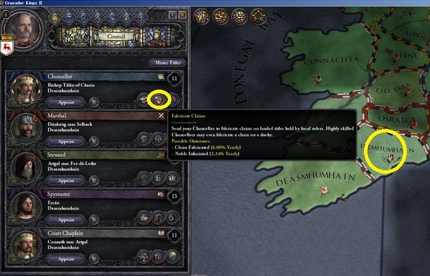 これをクリックしてから狙う国(ここでは右上)の上でクリックすると宰相の配置ができます。