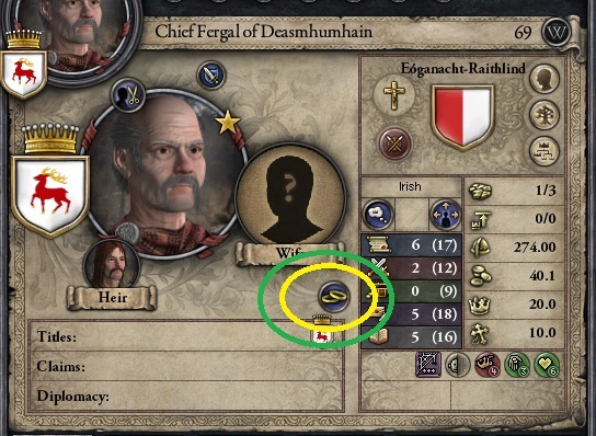 ③Court Chaplain 宮廷司祭でbild zealを選択し本拠地に配置 月間の信仰心がアップ
