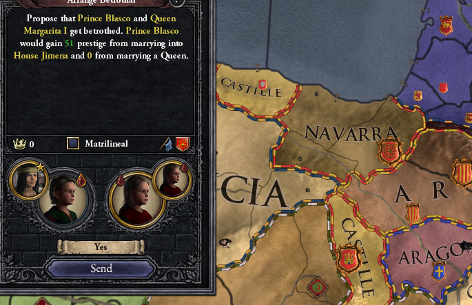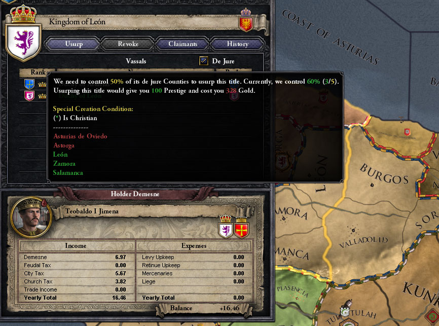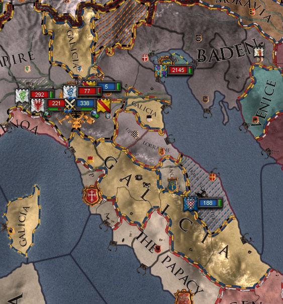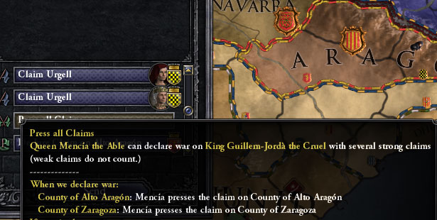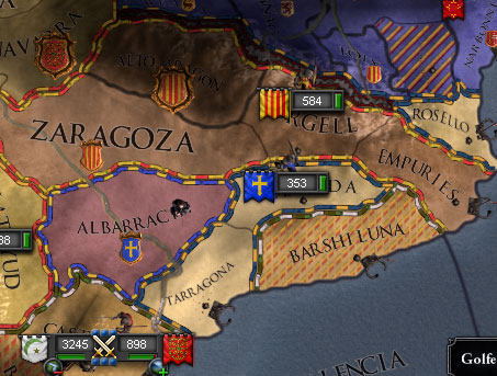 独立勢力のアラゴン公爵の請求権を捏造して潰したったわ。これで増えた領土は+20。全