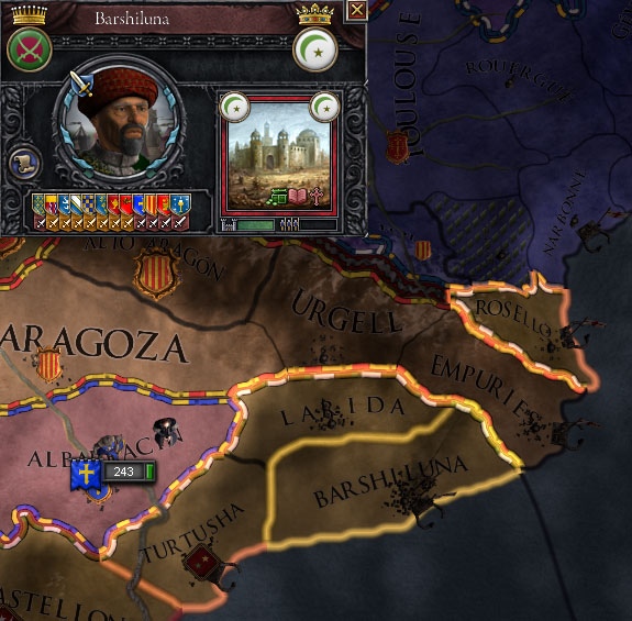 これでイスラムから奪い取った領土は13、支配領土は32やな。目標の40まであと8や。