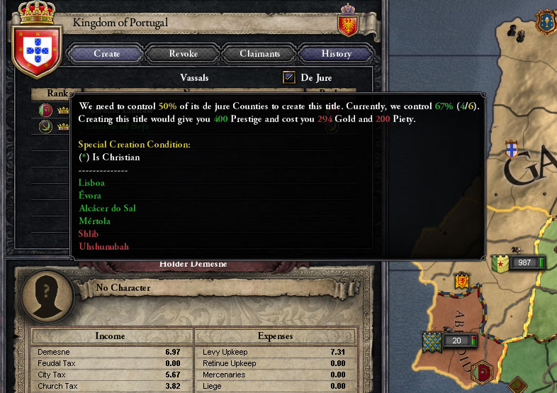 ポルトガル王国創設や。こうやって新しい王国作ると、家が大きなったって実感するわ。