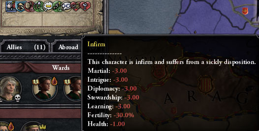 Naive Appeaser(純朴な融和主義者) Scholar(学者) Wroth(短気) Diligent(勤勉) Ambitious(野心家) Temperate(節度がある) Gregarious(社交的)