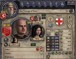 息子が異端に染まりさらにアングロサクソン人になっていたためリロードしました。 これは、アングロサクソン人の宮廷司祭長が異端に染まったため投獄したんですが、税法改正のためすべての家臣のオピニオン0以上を満たす必要があったのです。そのため釈放せざるおえず、その後息子が6歳になって、管理能力が一番高い家臣をテキトーにあてがったらこのアングロサクソン人の異端司祭が一番高く息子が成人したらこうなっていたわけです。