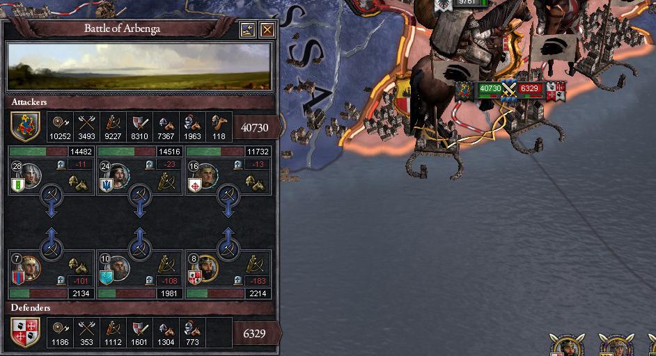 5月5日までにイベリア、イタリア、エルサレム、ブリテン島以外の叛徒は鎮圧され、帝国軍1万が北イタリアポモッサに上陸した。