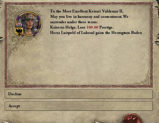 他に、エストリズセン家より唯一叛乱に加わったマジャール王シグルド二世がキプロス王位を、ウラディミール王ミティスラウがウラディミール王位を、アラゴン王エンリケがアラゴン王位を、フランス王ルーがオルレアン伯領を召し上げられ、