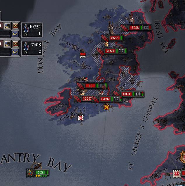 ブリテン島の反乱軍はアイルランド島を荒らしまわり、戦勝点を一気にマイナスに持ち込んだ
