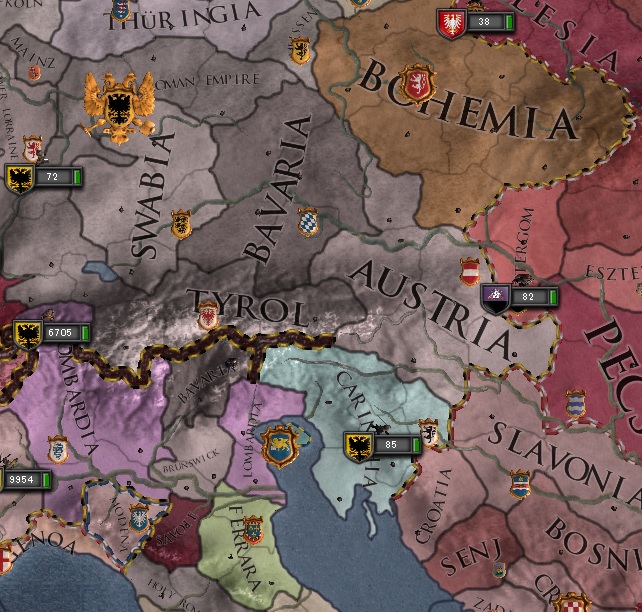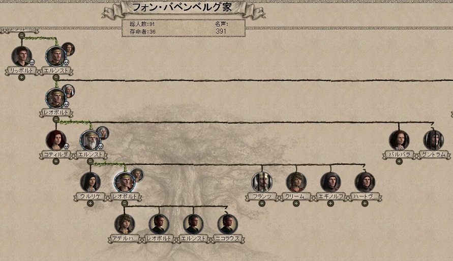レオポルトは31才。治世は安定しており、バイエルン王国再興のためにあと1州という状況も変わっていない。 しかし、この治世には一つだけ不安材料があった。妻エリスカとの間には既に4人の子を設けていたが、すべて娘だったのだ。 オーストリア公爵家の相続法は伝統的に準親族制を採用しており、男が産まれなくても相続に問題はないが、その場合は長女の婿として 迎える相手は慎重に選ぶ必要がある。 レオポルトと家令アルヌルフは頭を悩ませるのだった。