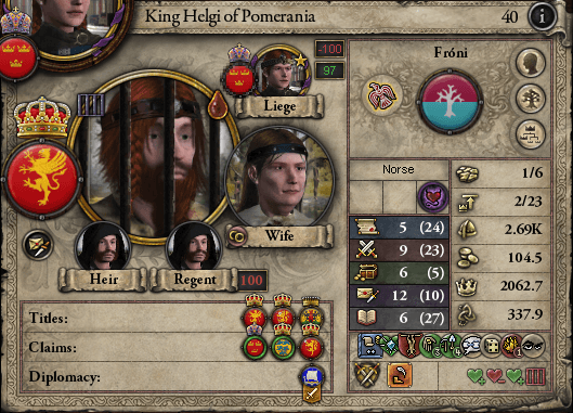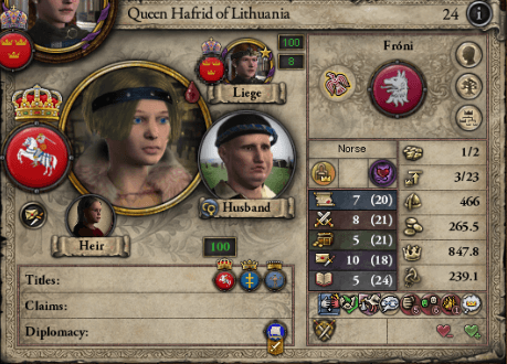 そして、この内乱で最も問題視された人物……ギュリドの叔父であるヘルギ王からは、ノルウェー王位が剥奪されている。これによって大幅に増えた直臣数は帝国民会のキャパシティを超えており、これを調整する為に新たにリトアニア王位が設けられ、リトアニア大族長・ハフリドに与えられた。