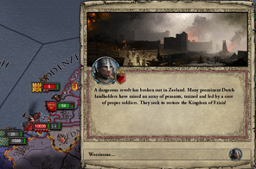 ネヘレニア戦争によって割譲され、スカンジナヴィアから遠く離れた飛び地となっているゼーラントで、フリギア人による大規模な暴動が発生したのである。 彼らはノルドやフランクのくびきから、カソリック国家としてフリギアを解放する事を宣言。訓練された多くの騎士や兵士が参加し、当時では一国の軍隊として見ても十分に強大な1万人規模の戦力でゼーラントを占領した。そして、割譲を求めてスカンジナヴィア本土への進軍を開始したのである。 シグルド2世はこれの迎撃に手を貸す事を約束したが、それであってもスカンジナヴィア帝国軍も軍力を結集する必要がある規模の暴動であり、とてもブリテン島に援軍を出している余裕は無かったのである。