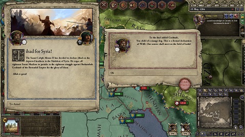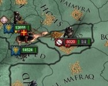 ペルシア帝国の参戦は、ウマイヤ軍がアキテーヌの防衛に向かったため戦力を大きく減らしたジハード軍を元気づけた。 参戦表明とともに、意気盛んなペルシア軍の大部隊がシリアへと向かってくる。 アラビア軍はそれを待ち構え、ペルシア軍と衝突した。