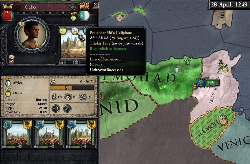 開戦から7年後の1249年、土壇場でどこぞの反乱軍に制圧されてしまったガベスの州都を除く、チュニジア全域を手中に収めることができた。