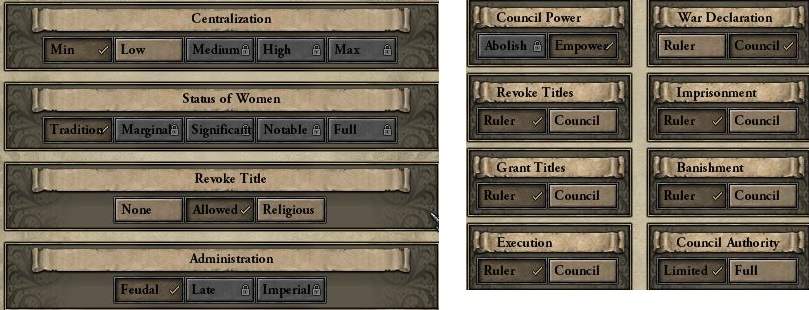 称号剥奪法が、異教なら他に影響を与えず可能になっていない。 国内には、多数の元スウェーデン王臣だったカトリック領主が残っているため、これを処理するためにまずは称号剥奪法を改正せねばならない。 その後で、評議会権限をAbolishにしていこう。