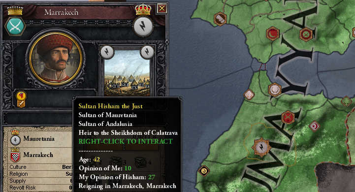 「したがってモーリタニアに拠点を定める。そのためマラケシュ領主より領地を召し上げる。」