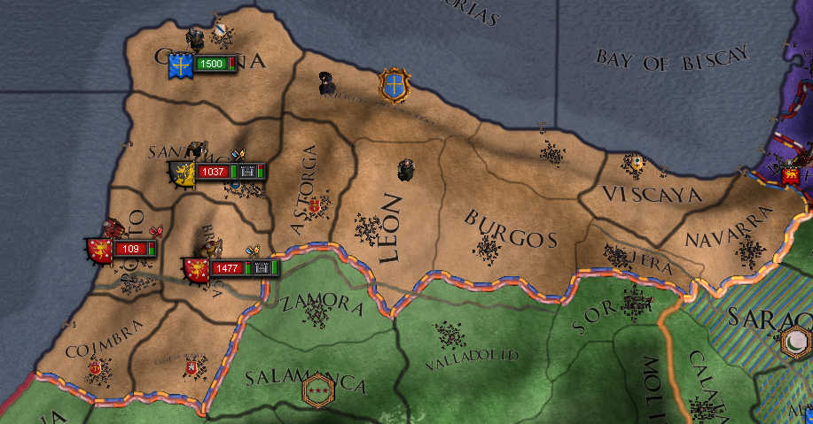 アラゴン地方に行きたいが内乱していてこれに巻き込まれて兵を減じるのはよろしくないな、ポルト地方を攻めるぞ!