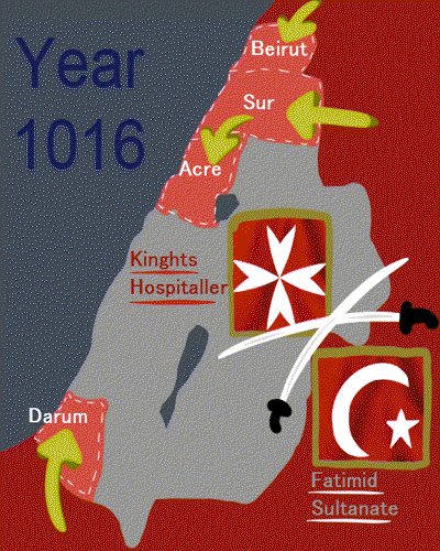 ホスピタル騎士団のエルサレム防衛を手ぬるいと考えていたカトリック教会の長・教皇マリナスが 再びエルサレムに対する十字軍を宣言。ベニスやジェノアの船団を借用しフランク人が大挙して押し寄せようとしているという。